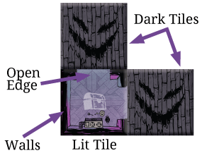At the start of the game, most tiles are on their Dark side. Roles can reveal Dark tiles to flip them to their Lit side, as follows:
